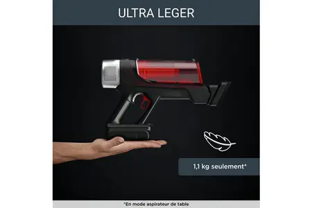 • X-Force Flex 9.60 vous facilite le nettoyage. Il combine à la perfection performance et confort d’utilisation grâce à son format ultra-léger (1,1 kg en mode aspirateur à main) et sa grande puissance d’aspiration constante allant  jusqu’à 100 Air Watts* pour une efficacité maximale dans le temps.