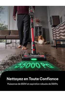 Dites adieu aux saletés les plus tenaces et éliminez facilement la poussière, les débris et les poils d’animaux avec une puissance impressionnante de 550W et aspiration robuste de 55KPa.