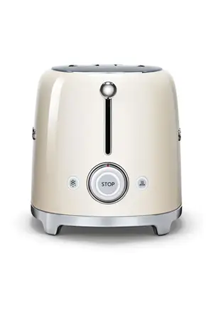Équipé de 2 fentes extra-larges, 6 niveaux de brunissage, 4 fonctions, un système de centrage automatique… tout est réuni pour vous offrir les meilleures performances.Design et robuste :Avec sa conception en acier embouti, il vous offre robustesse et durabilité et son coloris crème finition chrome lui permet de s’intégrer dans tous les types de cuisines, des plus classiques aux plus modernes.Performances :Toast grillé, juste doré, tiède… Le toaster Smeg TSF01CREU est doté d’une puissance de 950 watts vous propose un thermostat réglable 6 niveaux pour adapter le brunissage au goût de chacun.De plus, le système de centrage automatique permet d’obtenir un grillage homogène quelque soit l’épaisseur des tranches de pain.Fonctions :Le grille-pain équipé de deux fentes extra-larges possède une fonction décongélation : si vous avez du pain congelé, n’hésitez pas ! Sortez-le, placez-le dans les fentes et dégustez-le ! La fonction réchauffage est idéale pour savourer un pain toujours à la bonne température.