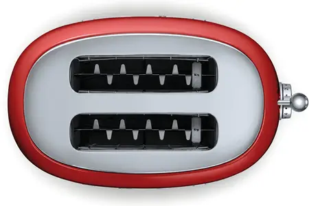 Équipé de 2 fentes extra-larges, 6 niveaux de brunissage, 4 fonctions, un système de centrage automatique… tout est réuni pour vous offrir les meilleures performances.Design et robuste :Avec sa conception en acier embouti, il vous offre robustesse et durabilité et son coloris rouge finition chrome lui permet de s’intégrer dans tous les types de cuisines, des plus classiques aux plus modernes.Performances :Toast grillé, juste doré, tiède… Le toaster Smeg TSF01RDEU est doté d’une puissance de 950 watts vous propose un thermostat réglable 6 niveaux pour adapter le brunissage au goût de chacun.De plus, le système de centrage automatique permet d’obtenir un grillage homogène quelque soit l’épaisseur des tranches de pain.Fonctions :Le grille-pain équipé de deux fentes extra-larges possède une fonction décongélation : si vous avez du pain congelé, n’hésitez pas ! Sortez-le, placez-le dans les fentes et dégustez-le ! La fonction réchauffage est idéale pour savourer un pain toujours à la bonne température.
