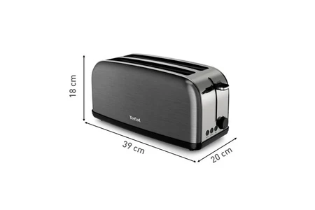 Redécouvrez le plaisir du petit-déjeuner avec le grille pain Grille-pain deux longues fentes TL520810 de Tefal !Préparez facilement votre pain grillé tous les matins grâce au grille-pain conçu pour tous les types de pains !Design :Laissez vous séduire par ce grille-pain au design élégant gris en acier inoxydable.Performances :Le grille-pain est doté d’une puissance de 1400 Watts vous offre 2 longues fentes à largeur variable.Elles son adaptées pour tous les types de pain et peuvent faire dorer quatre tartines ou bien deux demi-baguettes en même temps.Son thermostat réglable 7 positions vous offre des résultats parfait quels que soient vos goûts, de légèrement grillé à doré ou très croustillant.Multi-fonctions :Ce grille-pain possède 3 fonctions différents :– Arrêt : pour interrompre immédiatement le grillage.– Décongélation : pour griller directement du pain congelé sans avoir à le décongeler au préalable.– Réchauffage : pour réchauffer des tranches déjà grillées.Entretien :Son tiroir ramasse-miettes amovible vous facilitera le quotidien !En effet, plus besoin de déplacer le grille-pain pour le nettoyer, il suffira d’extraire le tiroir.Sécurité :Ne vous brûlez pas les doigts !La poignée de surélévation vous permet d’attraper facilement toutes vos tranches de pain, même les plus petites en vous évitant les brûlures.