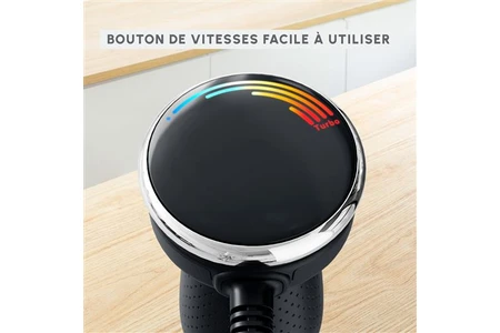 Le mixeur plongeant offre 20 vitesses réglables et un mode turbo toujours à portée de main grâce à un bouton facile à utiliser, permettant ainsi de modifier la vitesse pendant le mixage.