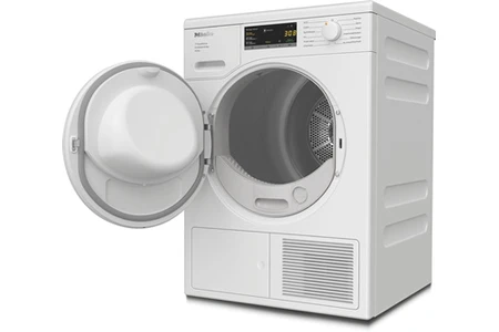 Le Miele TCA520WP est équipé de nombreuses fonctionnalités pratiques telles que le départ différé jusqu’à 24 h à l’avance, l’affichage du temps restant, et l’éclairage LED du tambour.